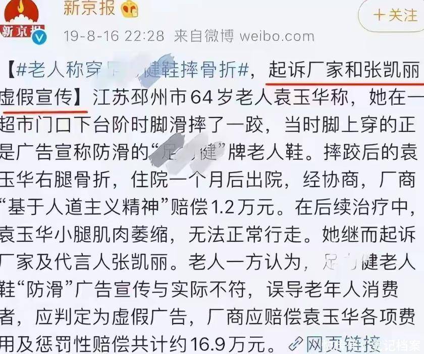 2019年的时候,她代言的足力健老人鞋就被爆为虚假广告。