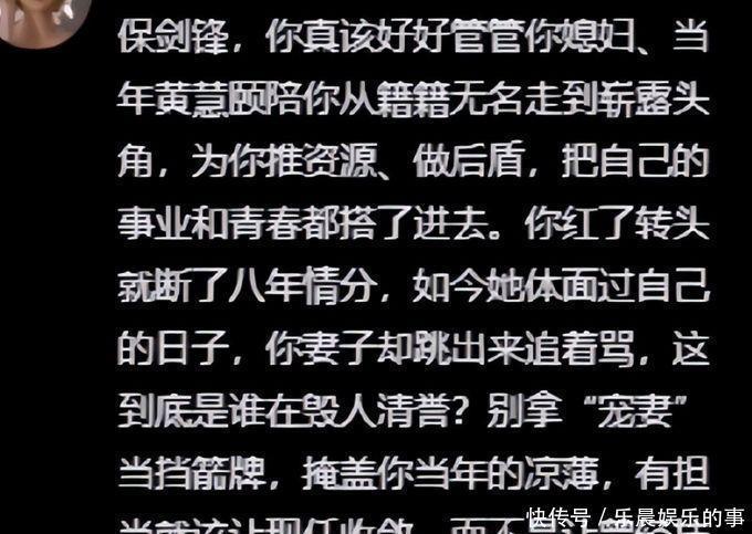 众多网友纷纷推测,在保剑锋与黄慧颐的交往过程中,他们可能已经出轨了。有些网友走到保剑锋的地方,批评他过于关心自己的媳妇,黄慧颐把她最宝贵的青春时光都献给了他,现在的她不应该受到这样的待遇。